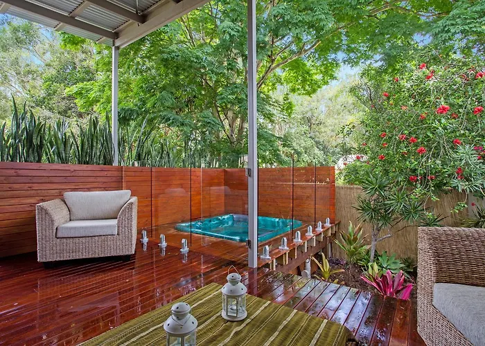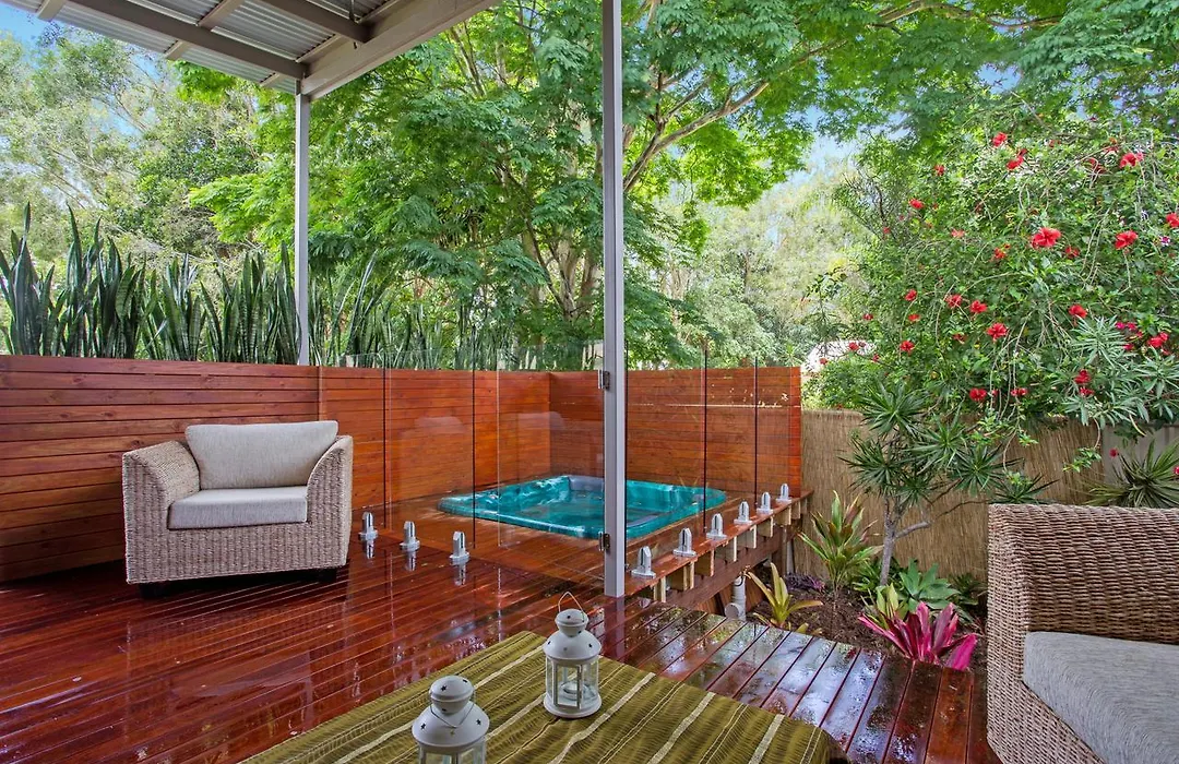 アクア ファン パークから2.7km離れたところにあるベッドルーム1室のBeach Cottage Coolum Beach With Spa And Fire Tableには、中庭の景色を望むテラスがあります。 プールを提供するこの宿泊から徒歩で25分離れたFirst Bay Coolumお客様を招待いたします。